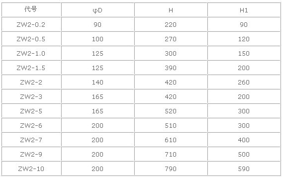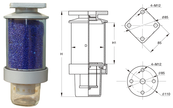 吸濕器安裝尺寸表: